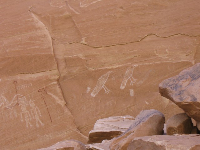 Once through the Narrows, we spent a day seeking out the intriguing rock art that is scattered across a fairly large “island” that was left after an old meander in the streambed was cut off. We found some great art: