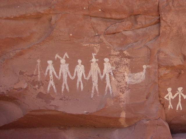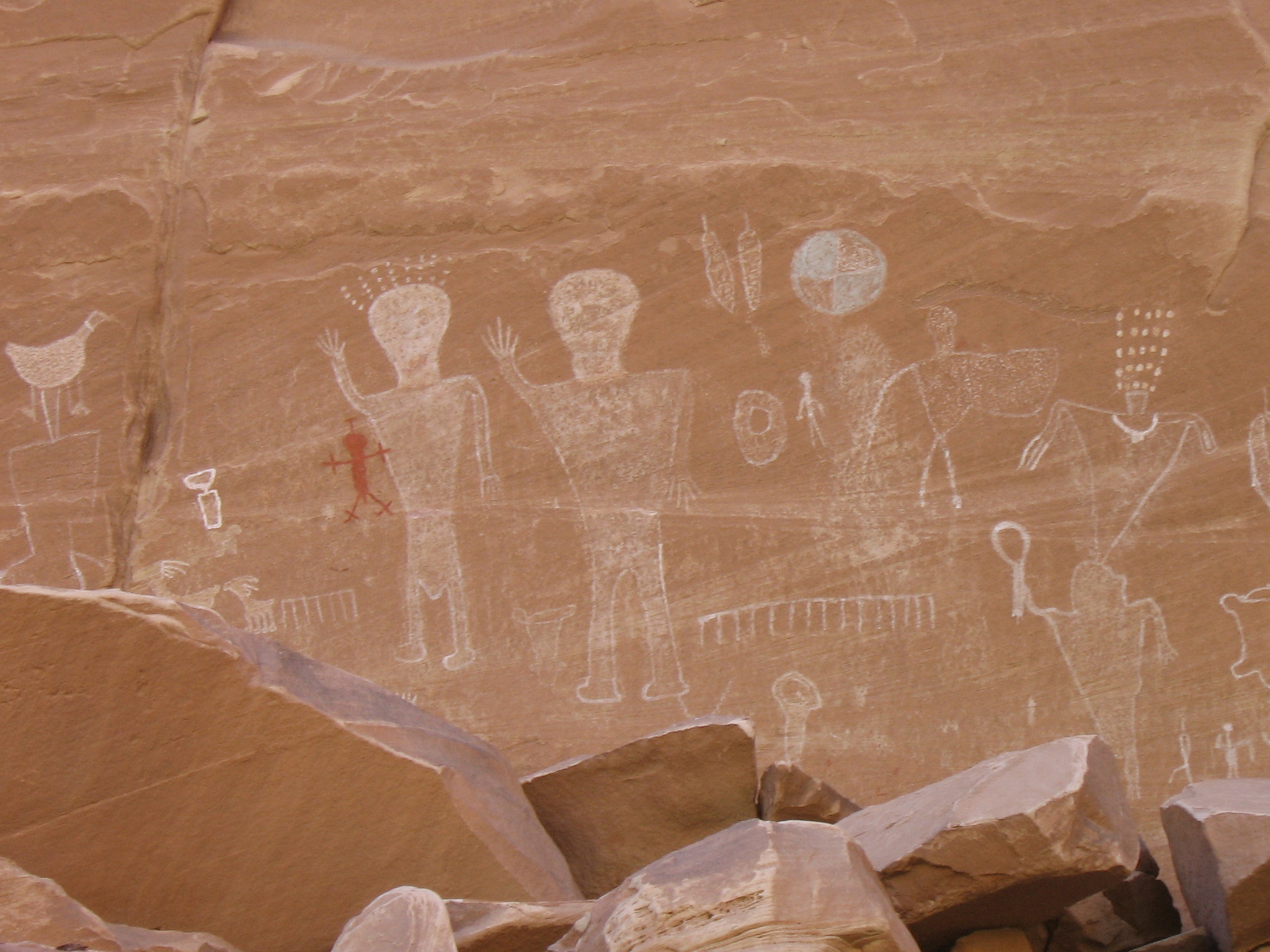 You can see these guys from quite a distance as you hike down canyon. You can just imagine them waving to Anasazi travellers, or to hunters coming home.