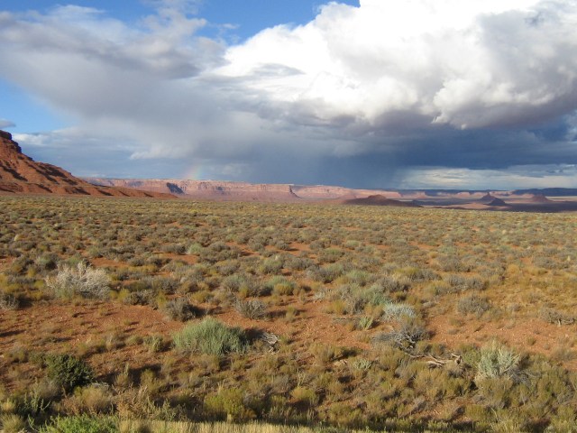 To cap off these perfect days in Grand Gulch, we had a glorious view of an approaching thunderstorm as we drove off of Cedar Mesa and toward the little town of Mexican Hat:
