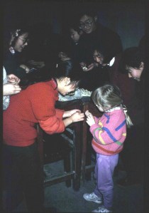 We taught English in Xi’an, China for the fall semester of 1990. As a result of the student protests and the tragedy of the massacre in Tiananmen Square in 1989, foreigners were few and far between in Xi’an in 1990. In our very large university, there were a total of three English teachers. There were no other families.
