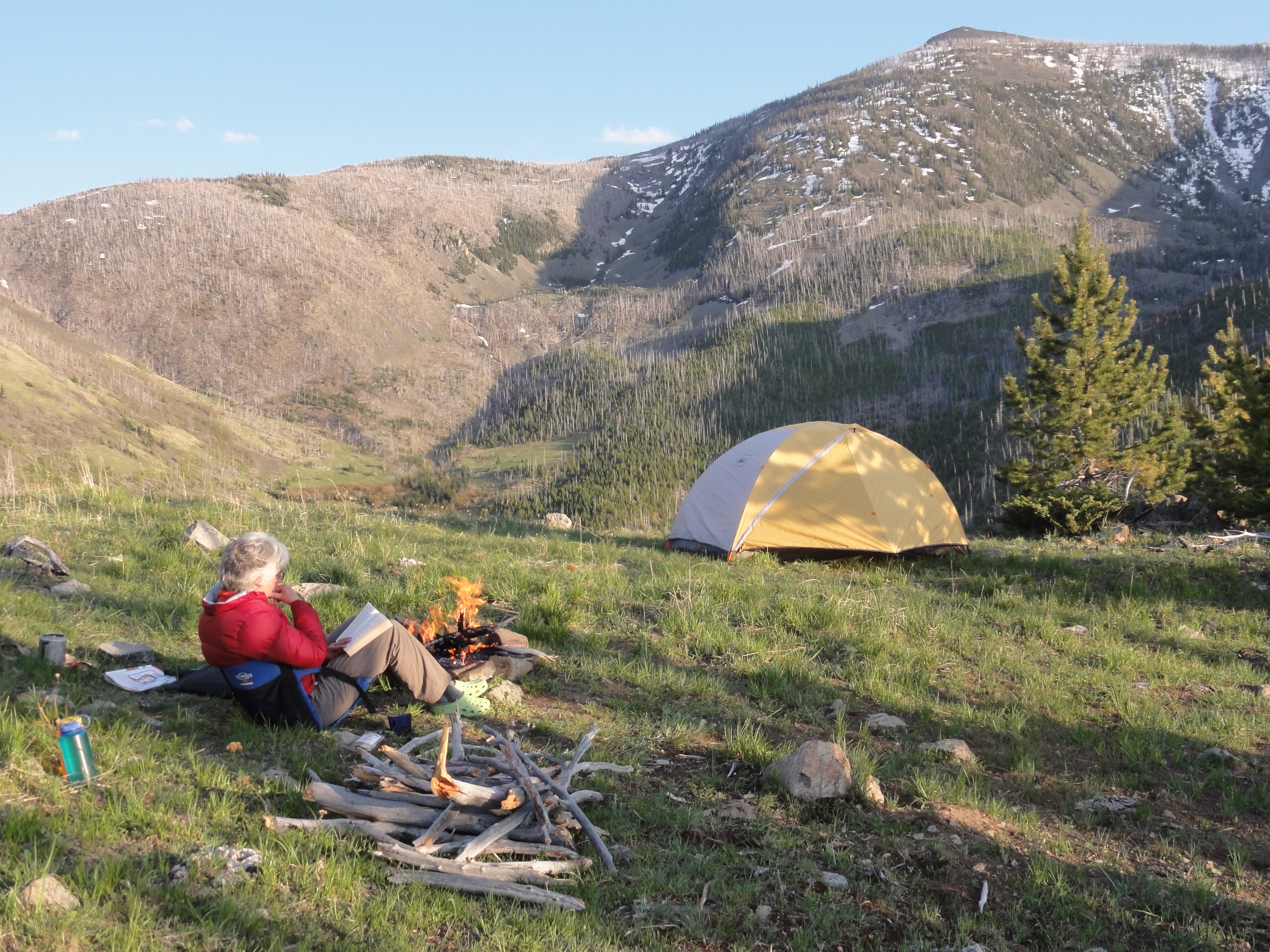 1. A mountain man partner/husband who is always willing to carry the heavy stuff, and who is even willing to carry BOTH of our packs when we drop them at a high point to look for a good campspot, and then decide to camp way below where we left our packs.  I should be ashamed to post this picture, but I’m not.