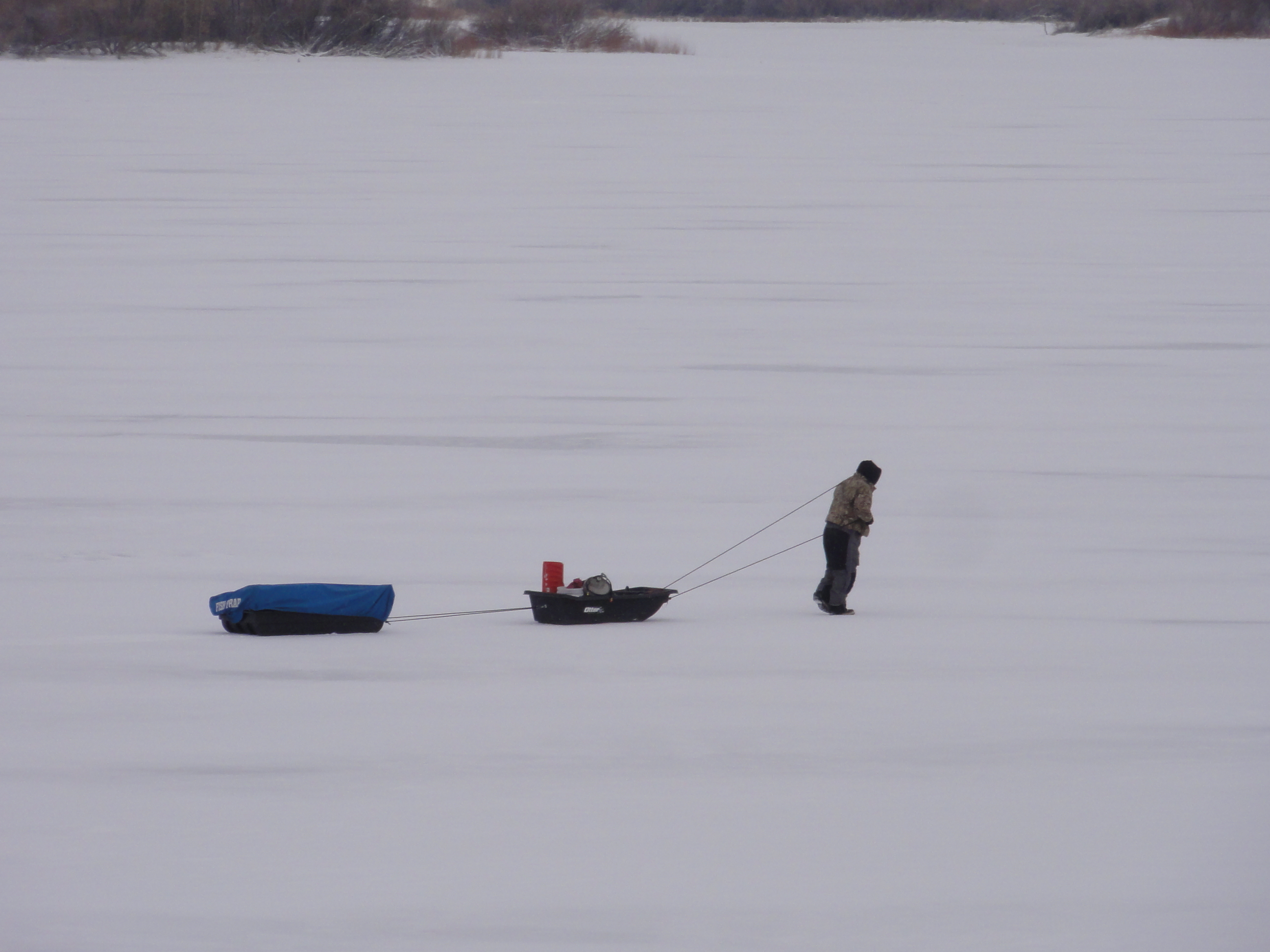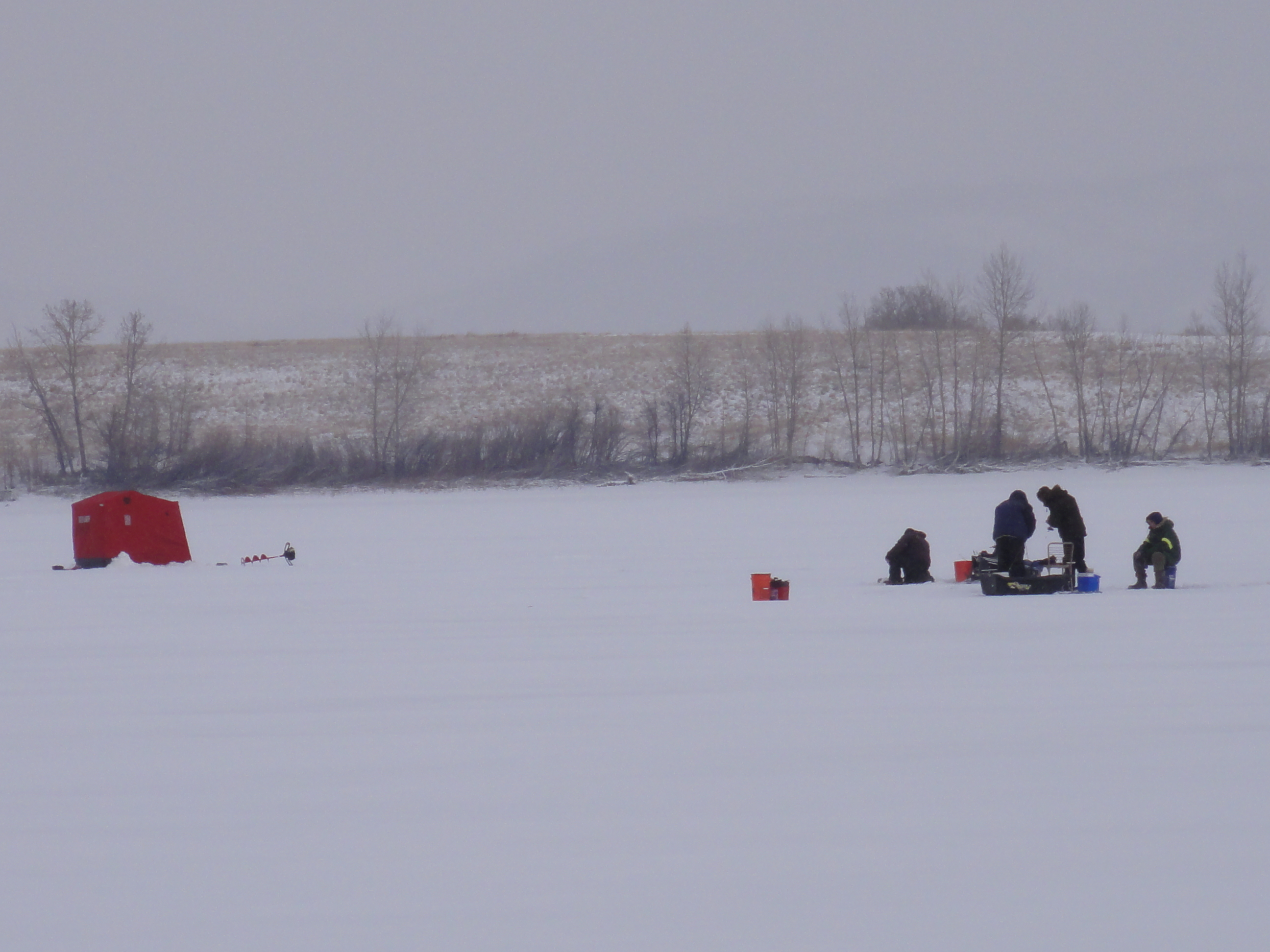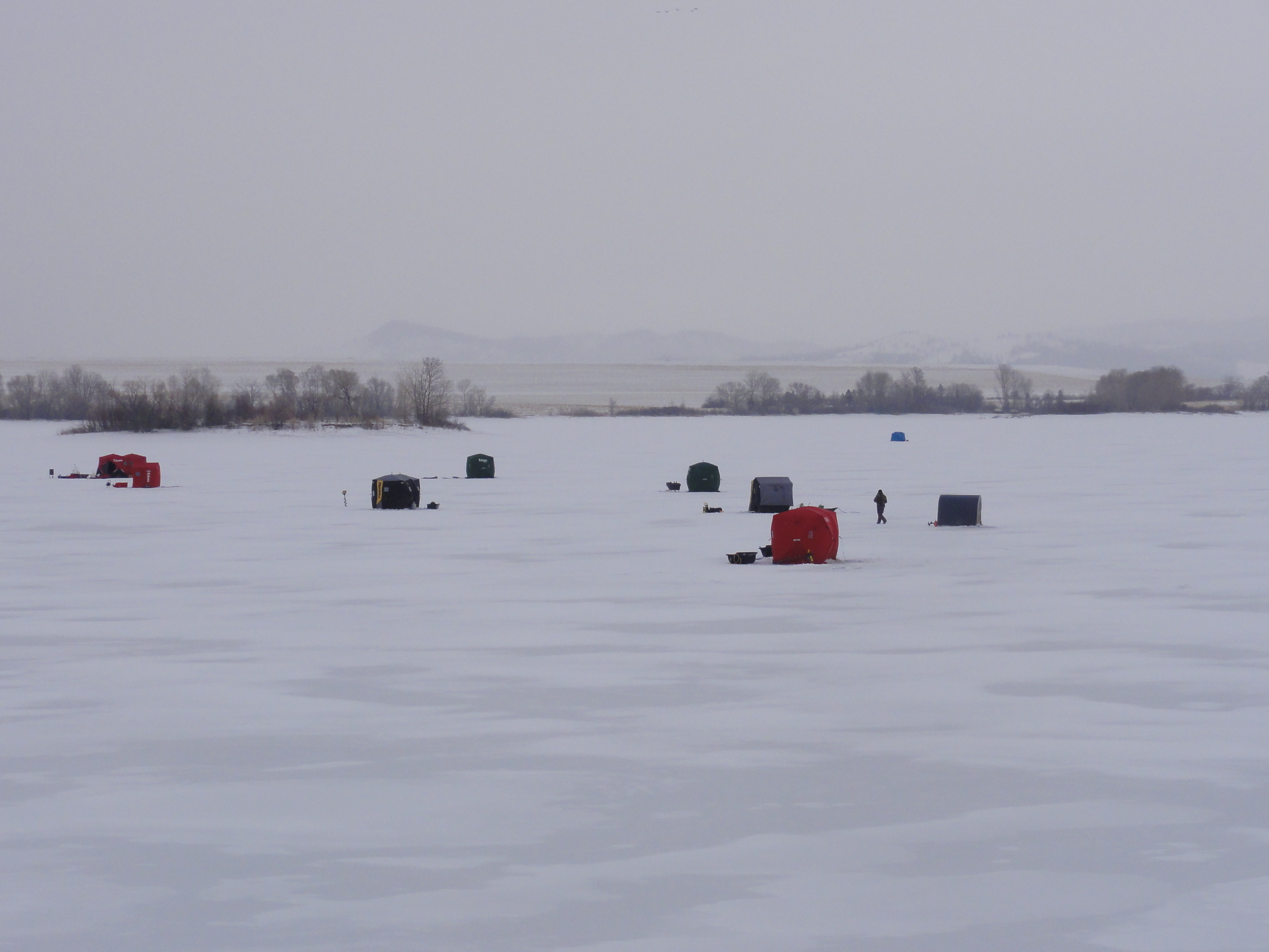 We’re not out there alone, either. Ice fisherfolk are all over the place: a regular little village has sprouted on top of the lake.