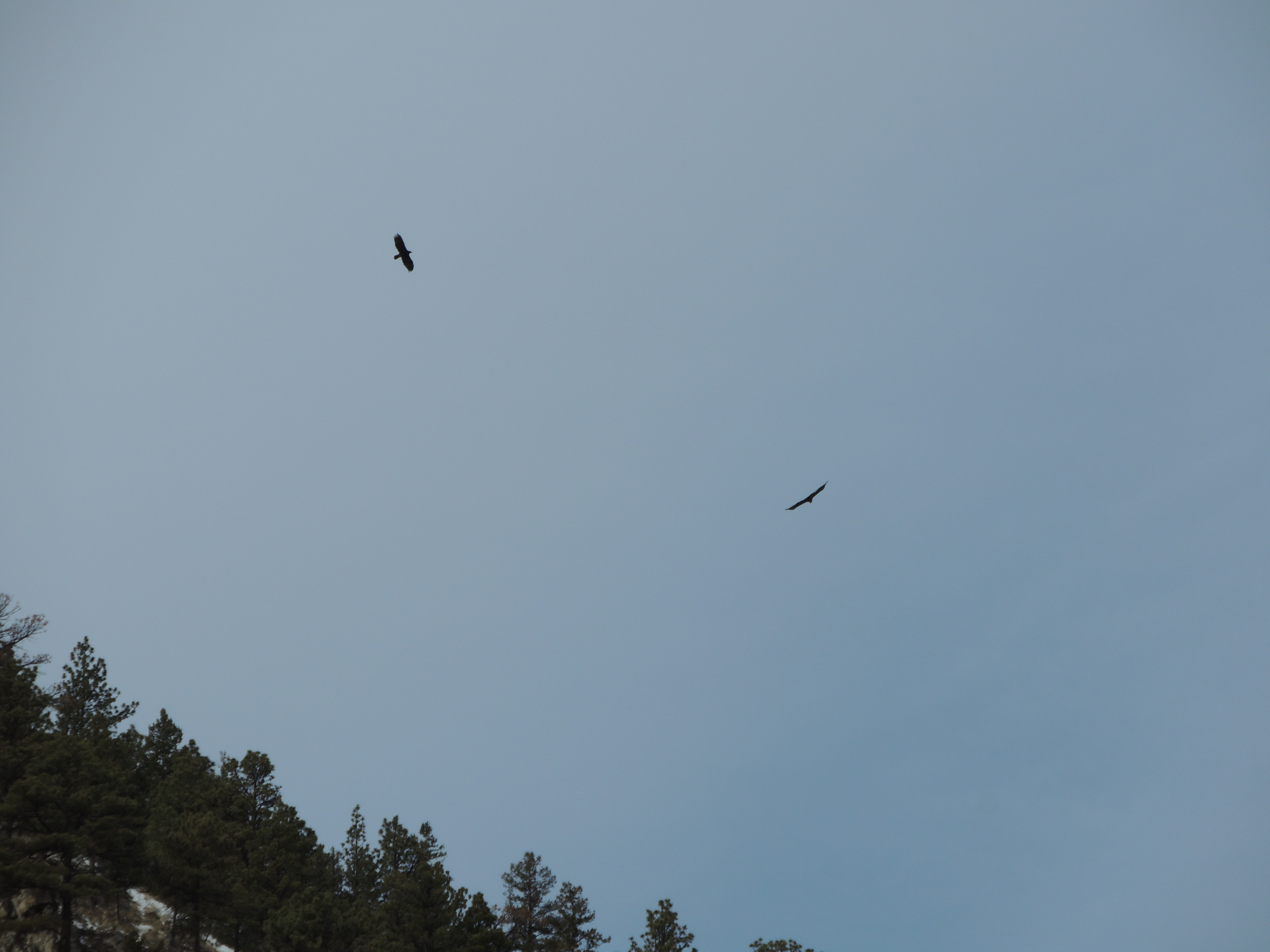 I’ve had my eye on a bald eagle nest that a pair of eagles has used the past few years, wondering when and if the eagles will return and start tidying it up.   It’s in an old dead tree on the Missouri River, in a beautiful canyon that I wrote about last spring.    Today was cold and windy, but sunny, so we headed out to check on the eagles.      There was no activity at the bald eagle nest, but a mile further downriver we saw two eagles in the distance, above the cliffs on the opposite side of the river.