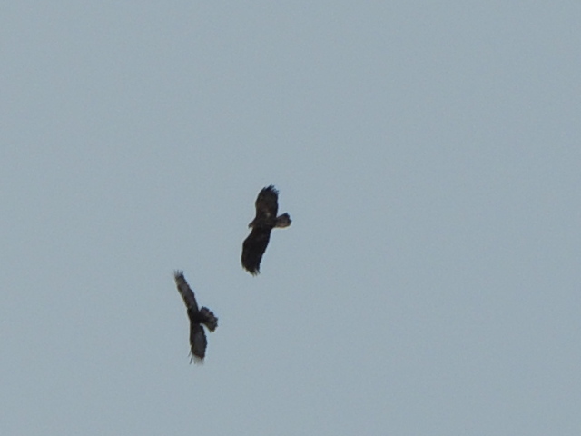 Twenty-five degrees with a steady cold wind is no one’s idea of spring, but despite this week’s wintry weather I found two welcome signs that the season is indeed getting ready to change: a pair of golden eagles building their nest and a small group of trumpeter swans taking a break on their way north.