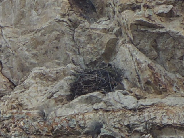 We sat and watched, and they soon started flying back and forth along the cliff, sometimes carrying sticks.  They were working on a nest!