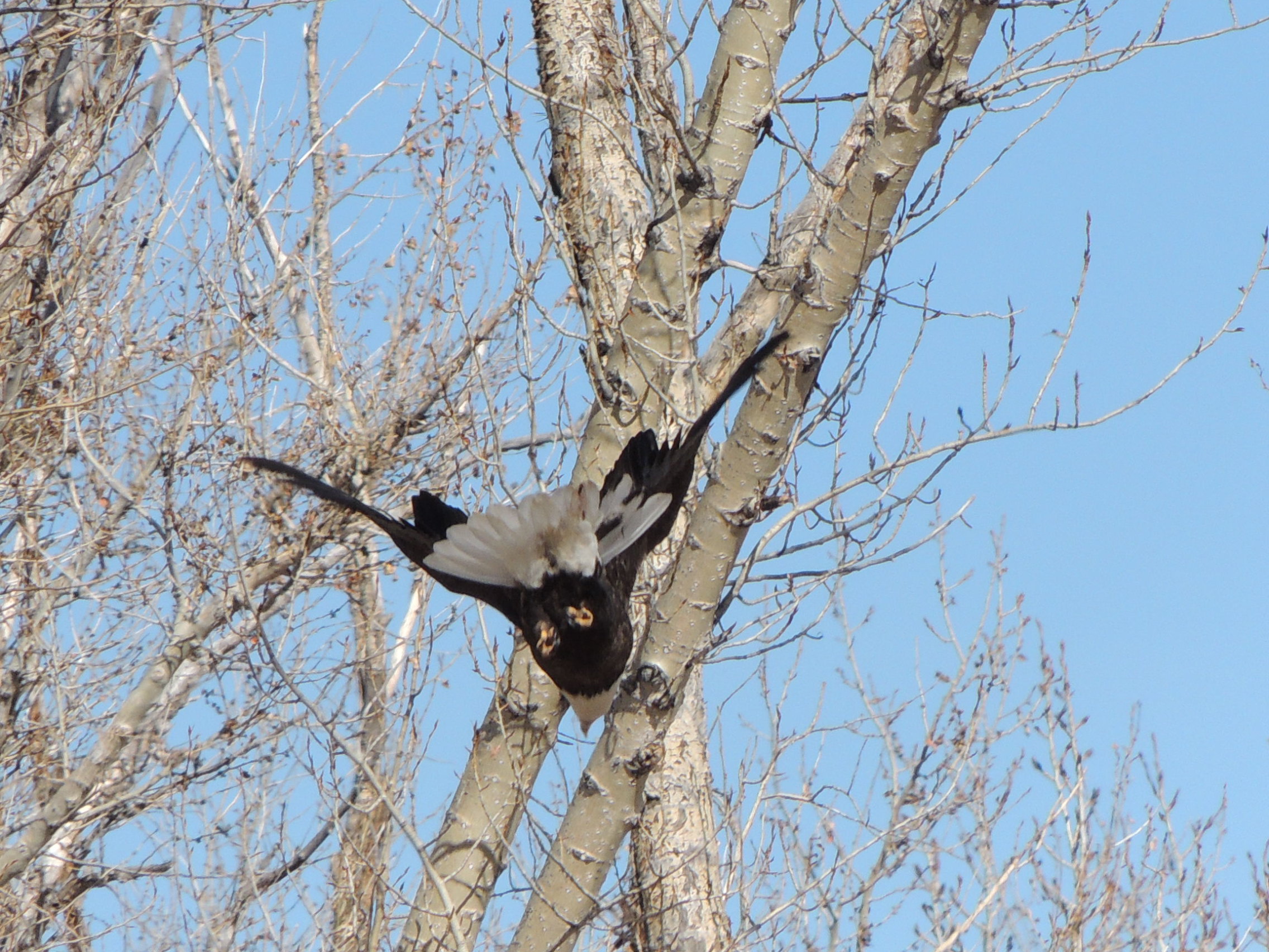 Earlier this month we discovered a golden eagle nest on a cliff above the Missouri River.  Last week I went out to check on the goldens and found that a pair of bald eagles had returned to a nest about a mile upriver from the golden eagles.  From across the river I watched the two of them putting the final touches on their nest.