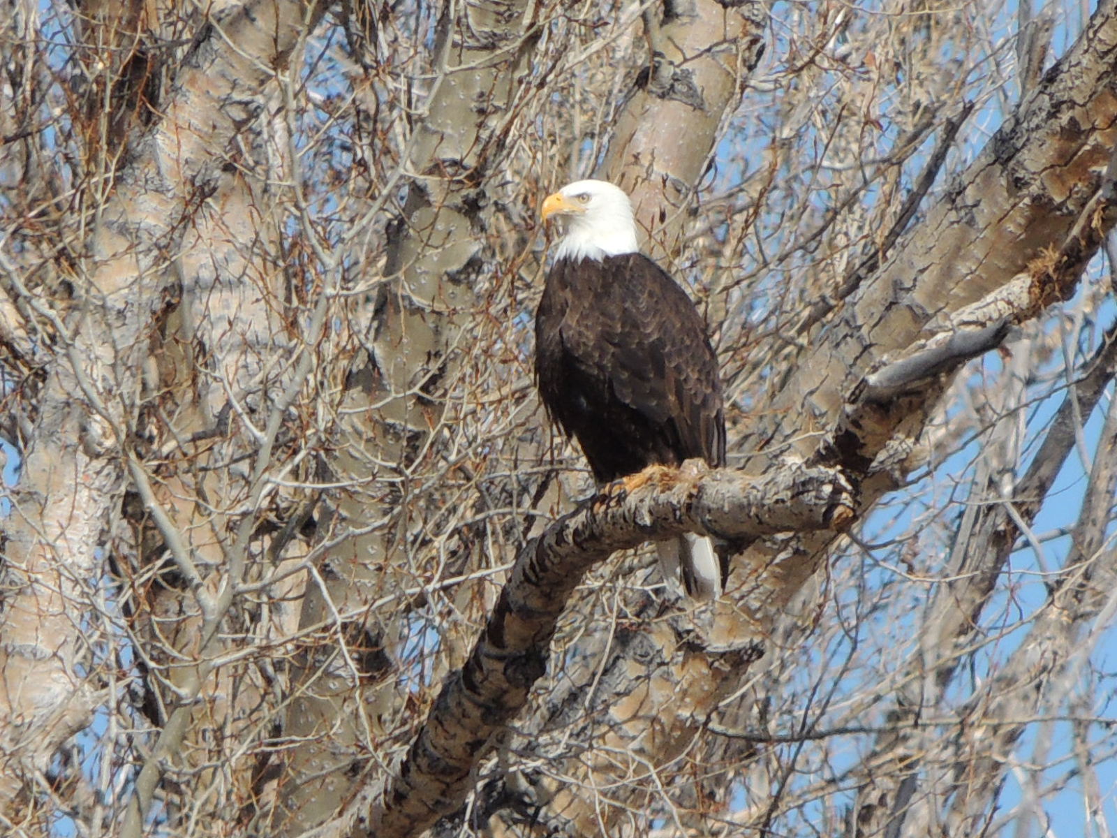 As we passed the cottonwood grove on our way back to the car, the male eagle had returned and was keeping guard near the nest.  We let him be and kept on our way.