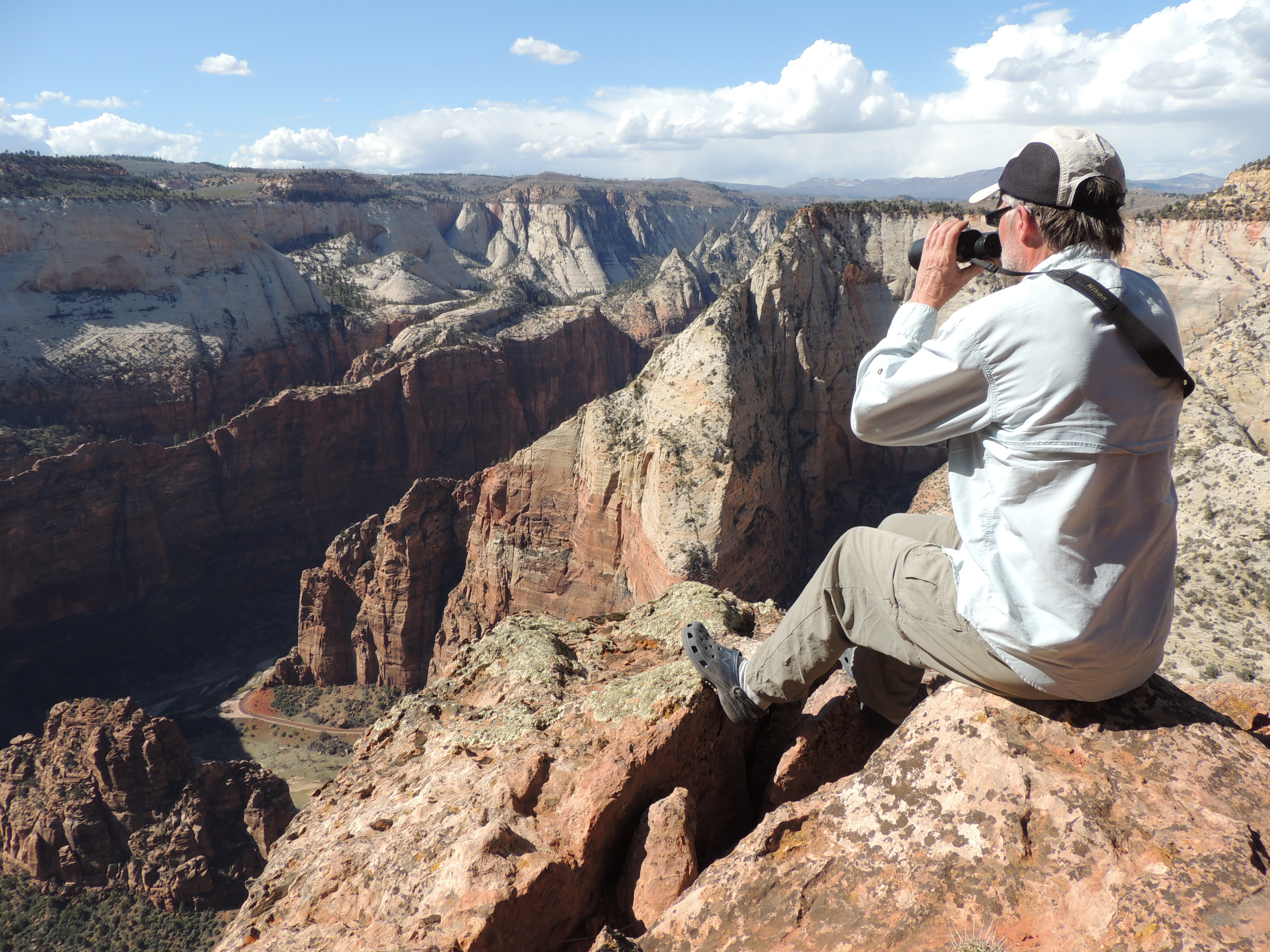 It’s a grand example of how to run a small national park, too.  Beginning in March only shuttle buses are allowed in Zion Canyon, which means you can look down from the top of Cable Mountain (as in the picture above) and not see a steady stream of cars.   And it’s not hard to lose the crowds, even if you arrive during the ridiculously busy weeks surrounding Easter.    As in most parks, once you hike a mile or two from a trailhead, you are pretty much guaranteed solitude.