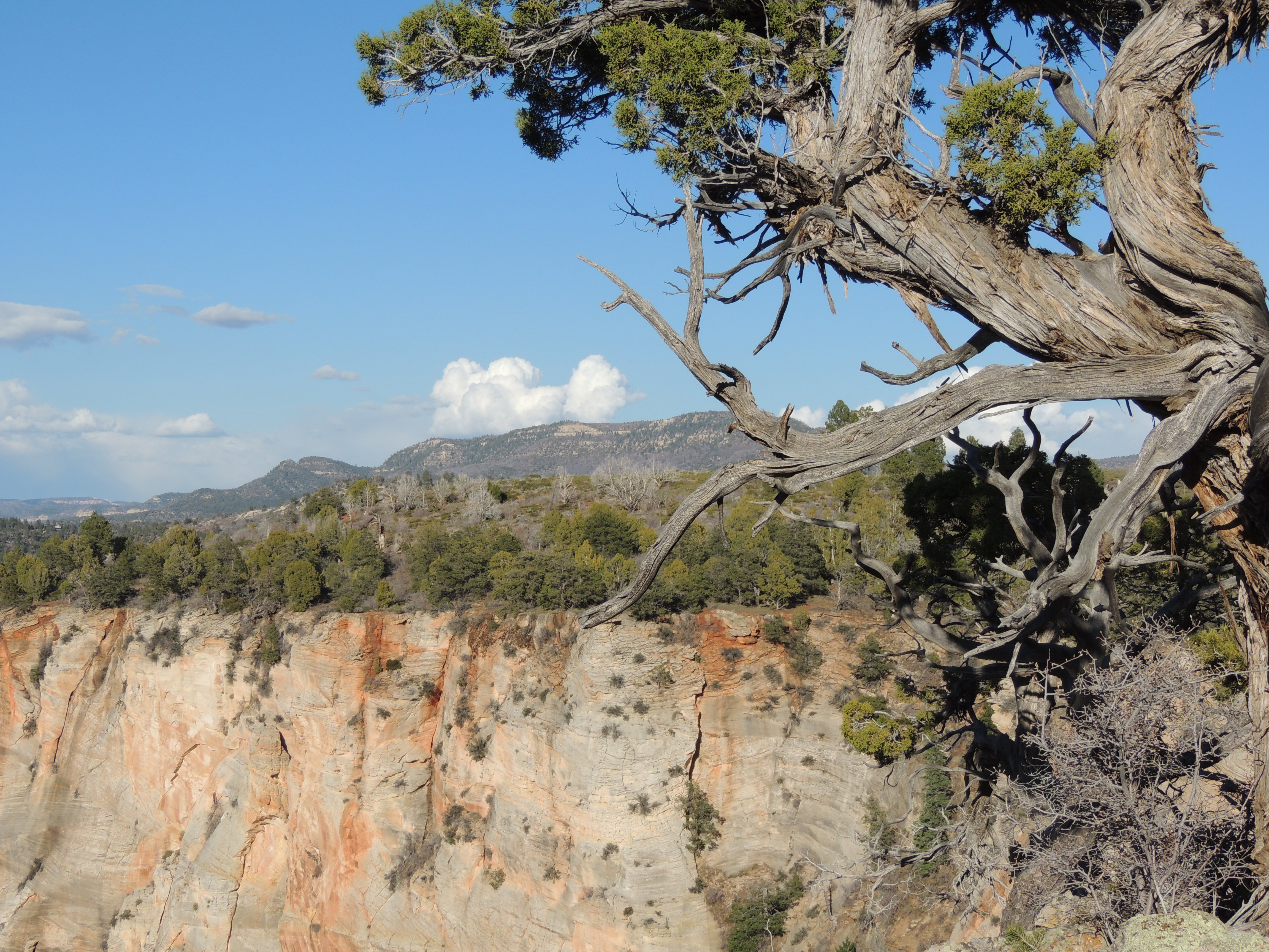The hike to Cable Mountain on the East Rim of the canyon is a perfect example of this.  There are three ways to reach the mountain: a really strenuous 11 mile hike from the bottom of the canyon, past the Weeping Rock, through Echo Canyon and then up and up,   an 8 mile hike from the East Rim trailhead on the east side of the park that is not as spectacular, but also not as hard, or a 4 mile hike from the Stave Spring trailhead that is really not difficult at all, but is at the end of a 4-wheel drive road that can be not too passable if the weather is wet.