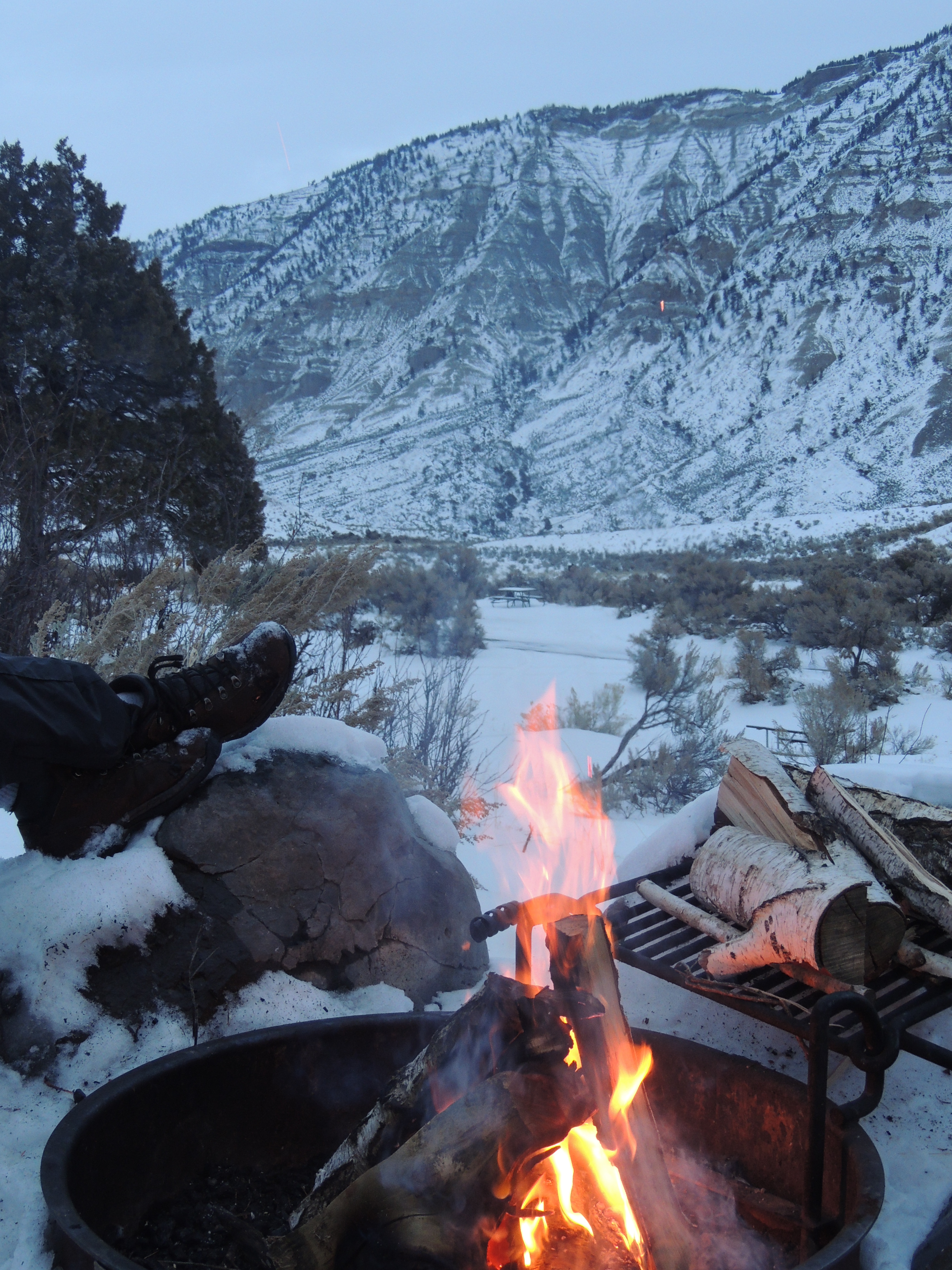 Last year there were a couple of folks in tents when we were camped there in the winter … hardy folks! Our little camper has a nice heater, but it’s pretty much too hot while it’s hot and immediately freezing when it goes off. Have you seen the public TV video about winter in Yellowstone? I think that’s actually the title. It’s beautiful.
