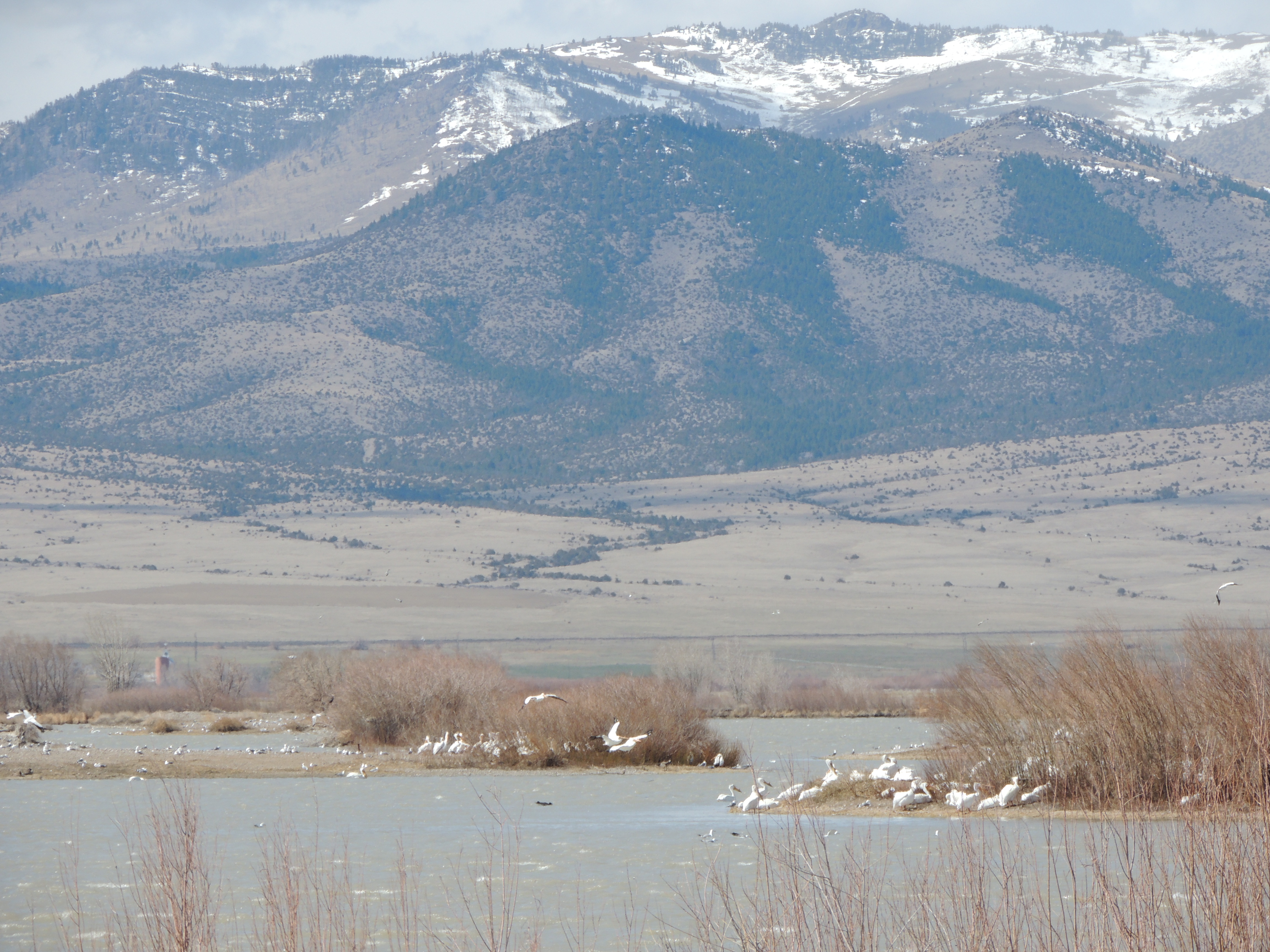 Surprisingly, our plan worked.  We ended up at the Wildlife Management Area at the southern end of Canyon Ferry Lake under blue skies.    Plenty of wind, but no snow.