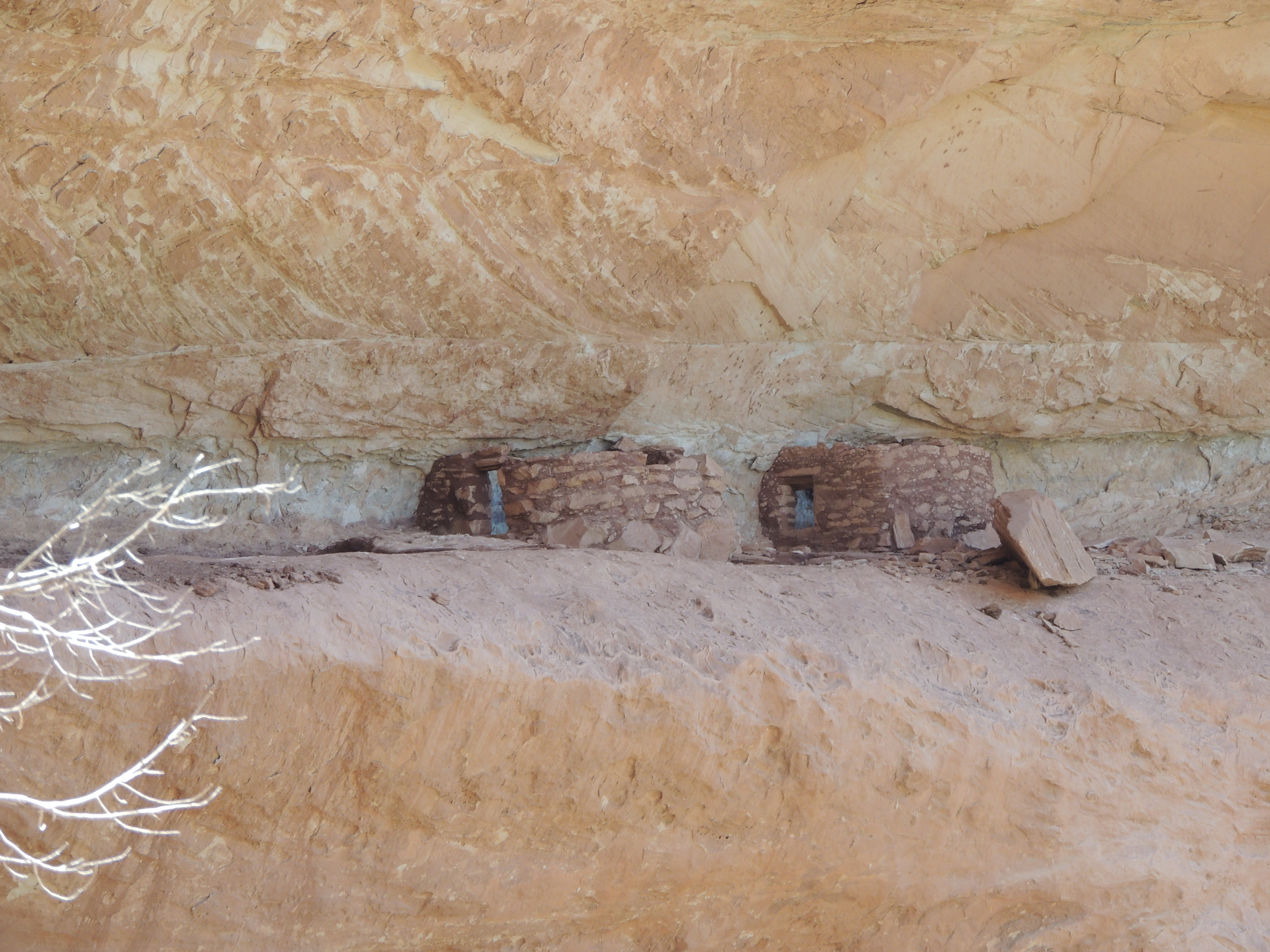 We headed upcanyon, enjoying the warmth and sunlight. After about 20 minutes we found the hidden ruin. You see the pictographs first.