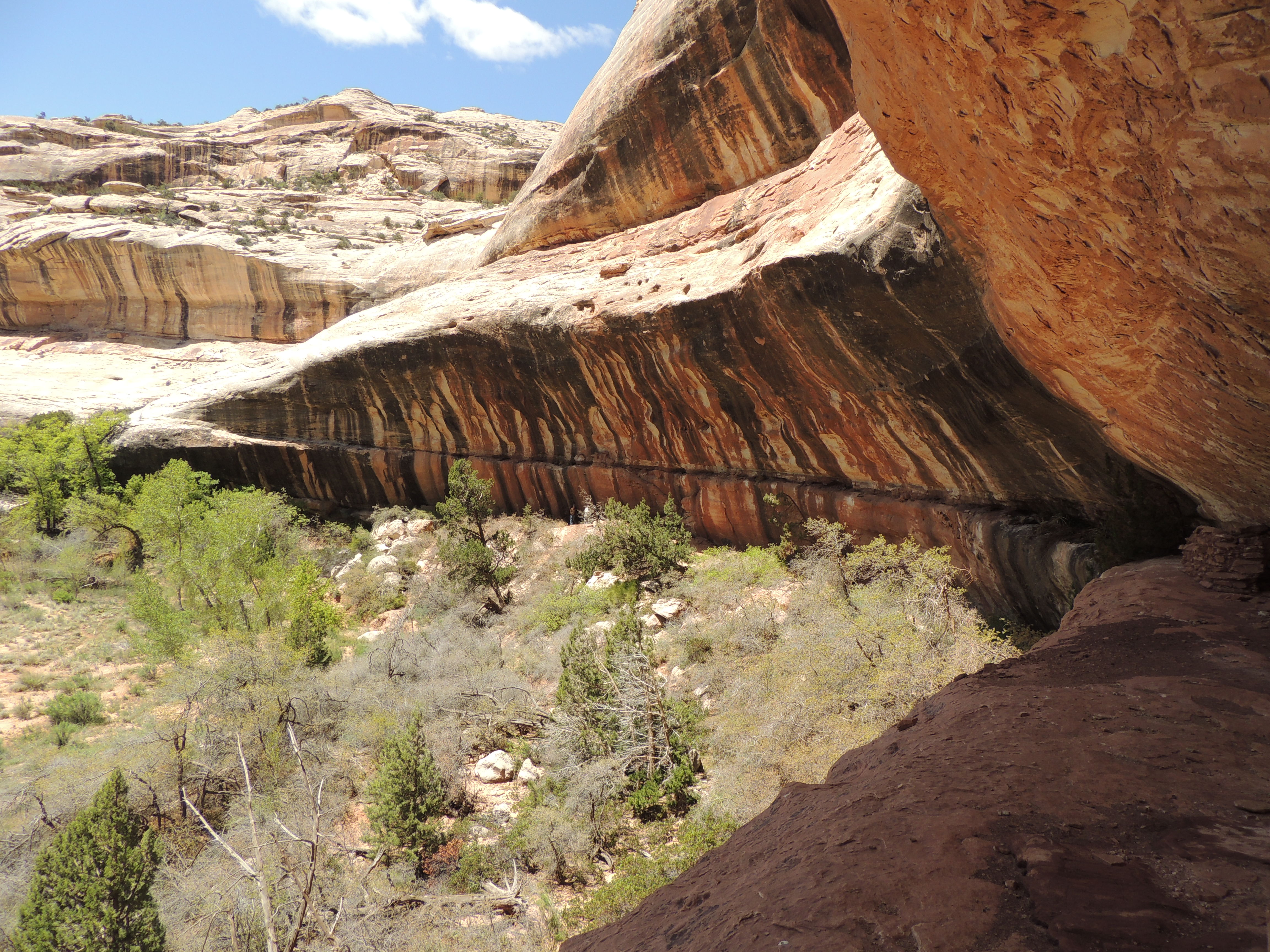 We were at one of my favorite little parks: Natural Bridges. I’d read about a ruin near Sipapu Bridge that the Park Service doesn’t tell you about, and I wanted to check it out. And yes, if you ask about this little ruin at the visitor center they’ll tell you they can’t say anything about it. (But it’s not really that hidden, so I’m going to tell you how to get there: go to Sipapu Bridge and take a right – upcanyon. Hike a little less than a mile and you’ll see the ruin on the left.) It’s a sweet little ruin, with some nice rock art as well.