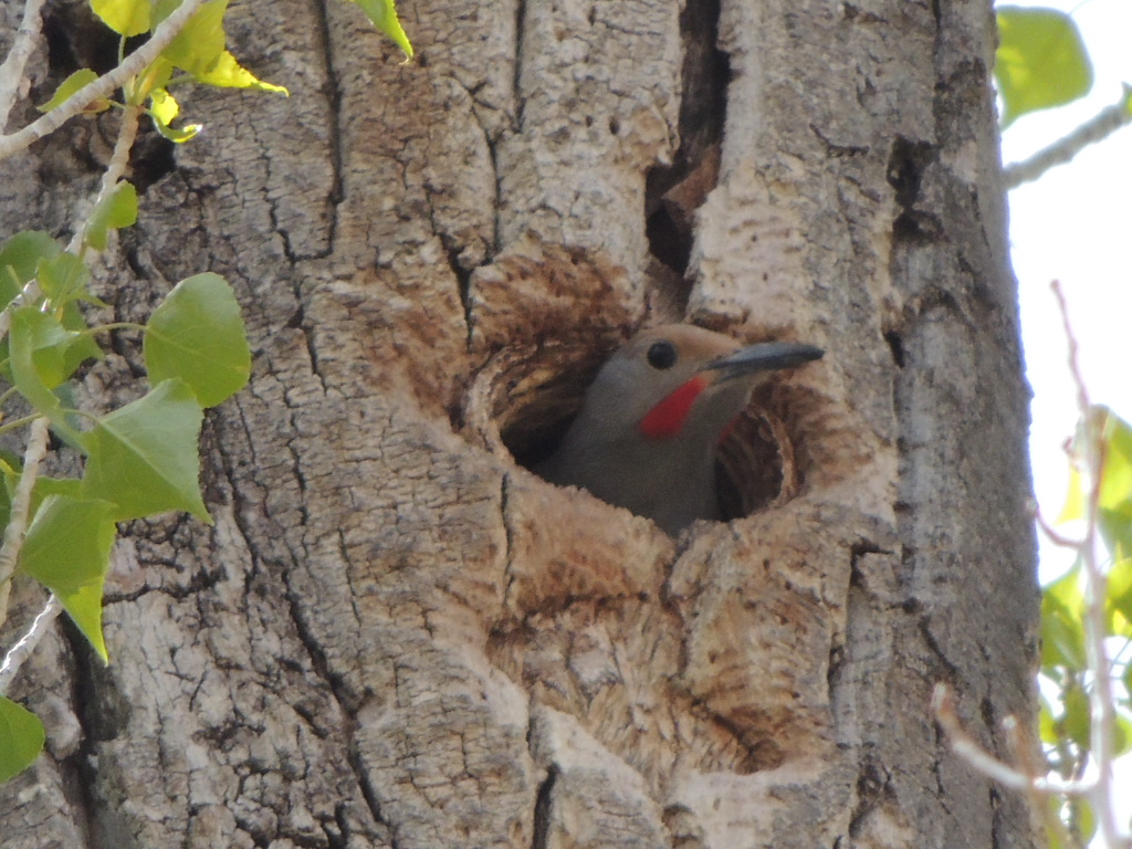 It’s a Northern Flicker. It was in that hole, hammering away to make it a good home, and popped its head out to see what I was doing!