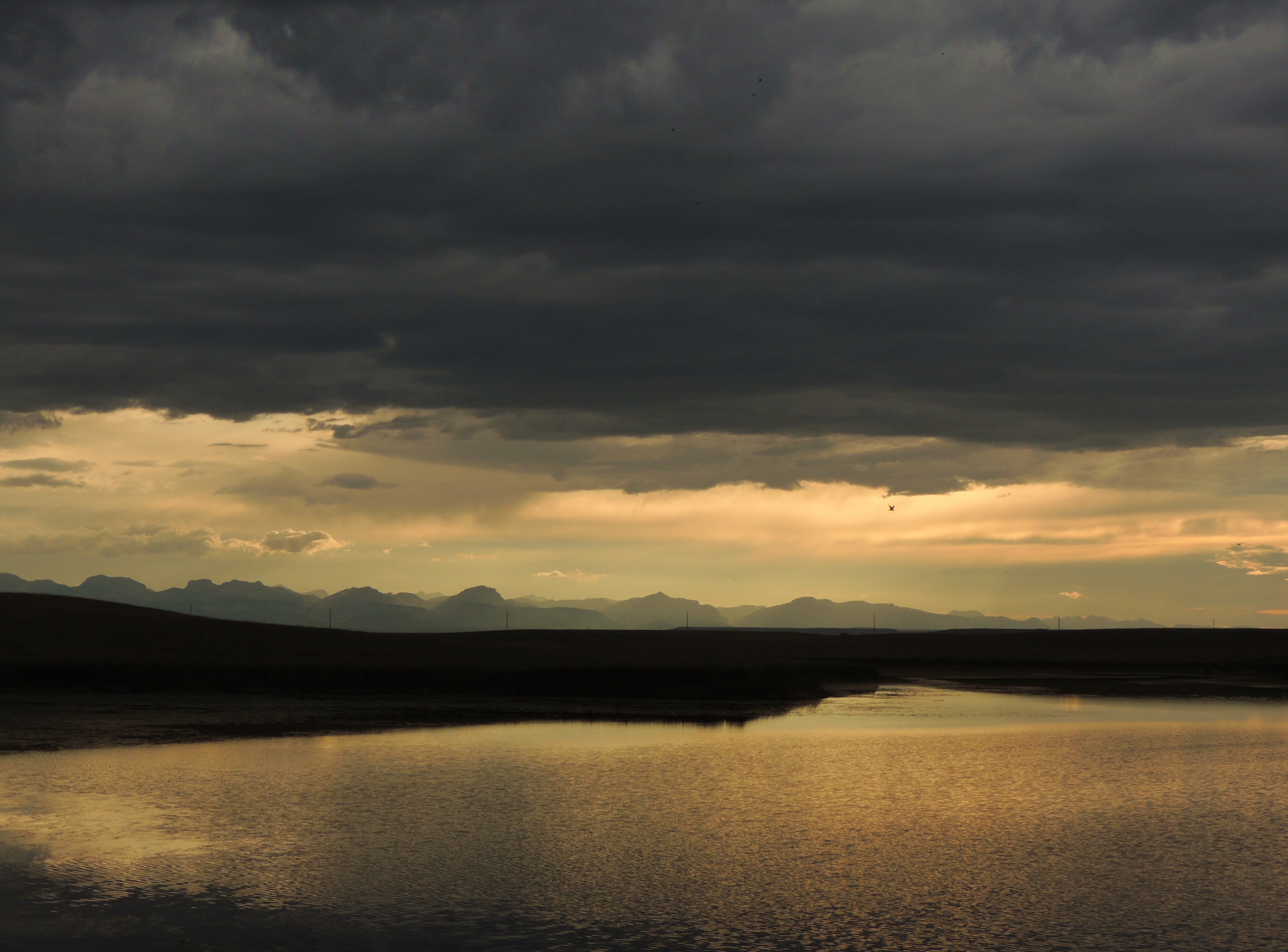 The sun going down behind storm clouds over the Rocky Mountain Front: another small wonder.